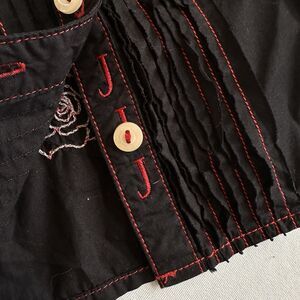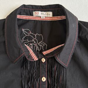 Great Detail on embroidery. Back has buttons that can be buttoned or not. Gives the shirt a more fitted shape.