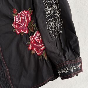 Johnny Was 3J Workshop Embroidered Button-Up Shirt Cotton Size MEDIUM