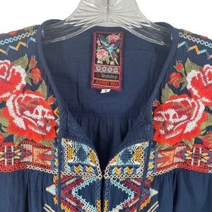Johnny Was 3J Workshop Embroidered Rose Flower Long Sleeve Blouse Shirt Size S