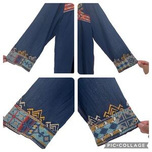 Geometric Embroidery down the Front Middle of Blouse, Shoulders, Across Back and Around Sleeve Bottoms
