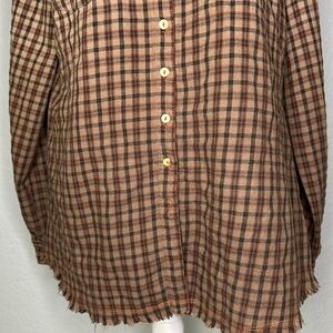 Johnny Was 3J Workshop Women’s Brown Ombre Plaid Flannel Button Down Shirt M