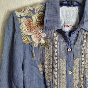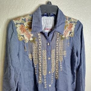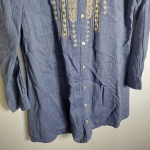 Johnny Was 3J Workshop button down boho embroidered tunic dress sz S