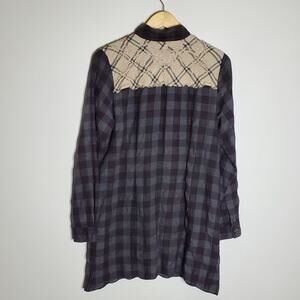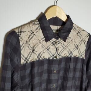 Johnny Was 3J Workshop lace front plaid Yoke Blouse in Great used Condition