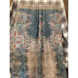 Johnny Was 3j Workshop Altivo Scarf Back Plaid Top Size S Silk