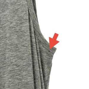 Note - small hole left armpit area where a tag was, see red arrows that show this single area
