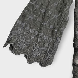 Johnny Was 4 Love & Liberty Grey Silk Floral Embroidered Tunic Blouse Sz Large