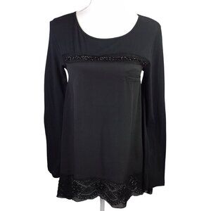 Johnny Was 4 Love and Liberty Top Blouse Size Small Black Beaded Long Sleeve