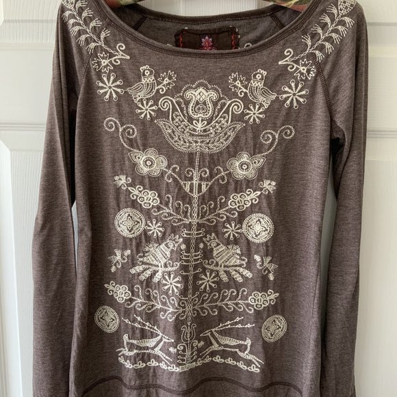 Johnny Was Tee Shirt. Color is a very pretty heather brown. Perfect condition, barely worn, no signs of wear.