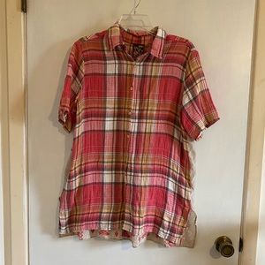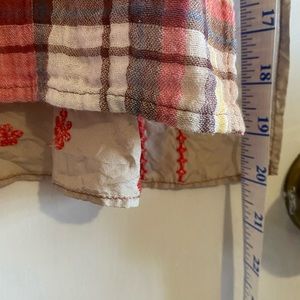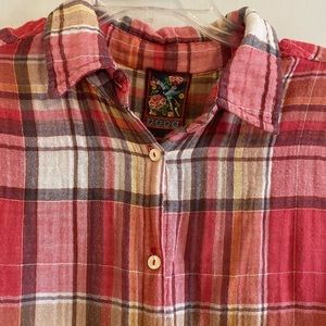 🔸Description- Plaid Short sleeve button up top// mesh embroidered backside//floral// approximately 22 inches pit to pit and 19- 20 inches length pit to bottom
