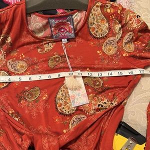 Armpit to armpit is 17”. Length is 47 “ brand new with tags in burnt orange.