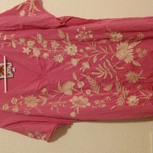 JOHNNY WAS MARSELLE EMBROIDERED PINK FLORAL TEE
