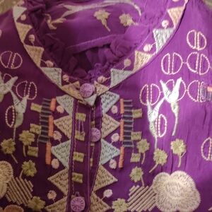 Johnny Was Measurements chart has been included in the pictures. If you have specific questions on measurements I would suggest that you get your own measurements and compare it with the chart as I'm not a Tailor by any means