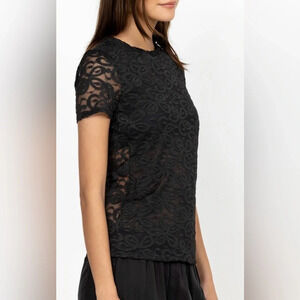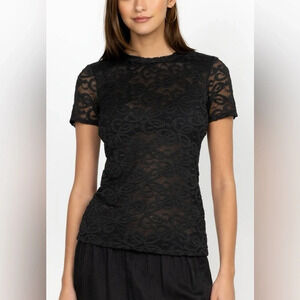Contemporary with timeless appeal, the Astrid Mesh Top reinvents a versatile silhouette with a statement-making pattern. Cut in a close fit, this top is made from a lightweight mesh material with a hint of stretch for comfort and features a round neck, short sleeves, and an experimental motif in subtle tones. Wear with cropped pants for an effortless take on modern style.