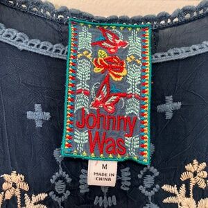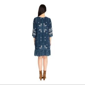 Navy blue Johnny Was Dress with intricate embroidery in very good used condition.