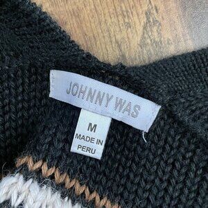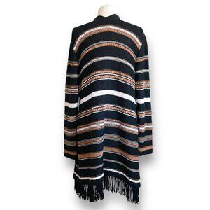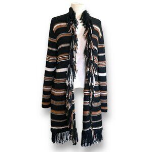 Johnny Was Ada Cardigan Sz M Black Brown Stripe Alpaca Wool Fringe Boho Sweater