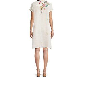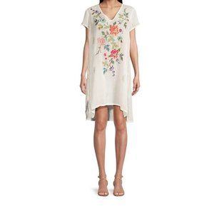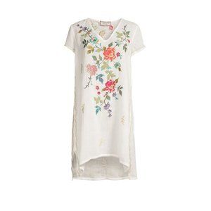 Johnny Was Adele Drape Tunic Dress Floral Embroid Flowers White Ramie New