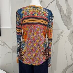 Johnny Was Allie Flower V-Neck Longs Sleeve Blouse Tee