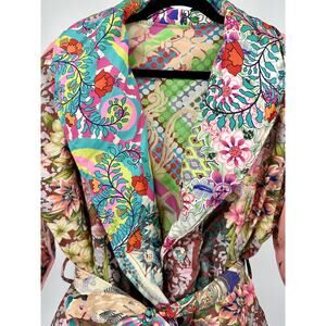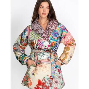 Stay warm and stylish with the Alyssa Down Puffer and its captivating bolt vintage print! This stunning reversible puffer coat is sure to turn heads. It features a belt and an elegant shawl lapel for a boho-chic look that exudes effortless sophistication.