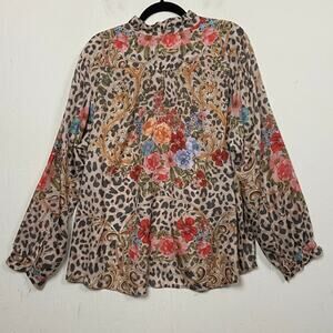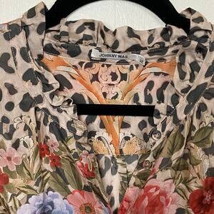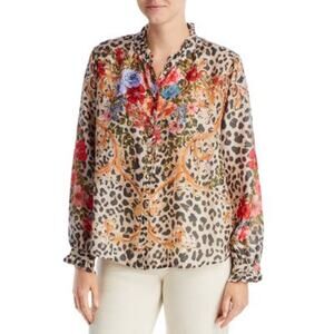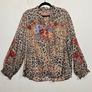 Johnny Was Amabel 100% Silk Blouse Large Cheetah Print Button Up Extra Large