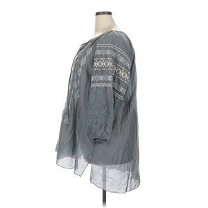 Pretty stylish Johnny Was Workshop Angelique gray semi-sheer silk blend peasant tunic with delicate embroidery and eyelet detail on the sleeves