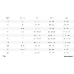 Top is a 3X. Manufacturer's charts say 3X is a size 26. Bust 53-56 inch, waist 4-47 inch, hips 56-50 inch