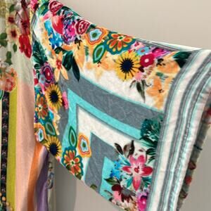 Johnny Was Patchwork Floral Silk Blend Kimono Robe Dress Size Large