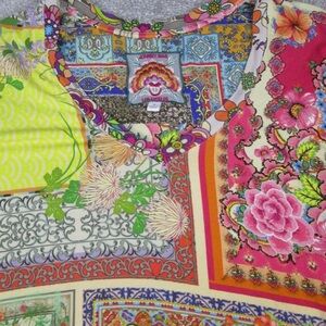 Colorful floral patchwork design. Soft and breathable. Ideal for casual wear.