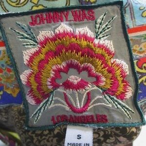 Johnny Was Anika Patchwork Floral V-Neck Swing Tee Top, Multi, Sz Small