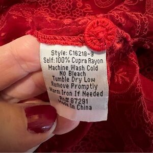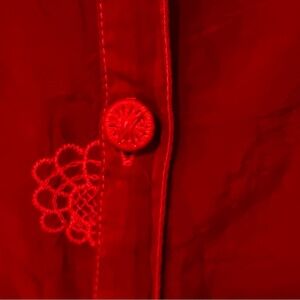Johnny Was Antik Lace Collared Long Sleeve Blouse Red embroidered fairy whimsy M