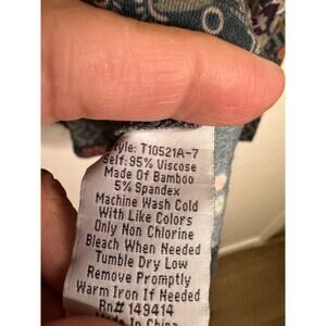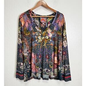 Johnny Was Aran Flower Favorite Long Sleeve V-Neck Swing Tee Top Bamboo Size XXL