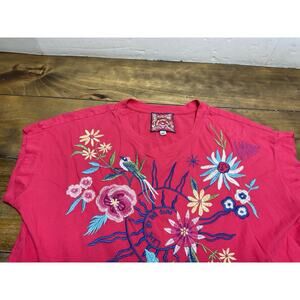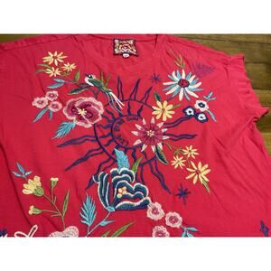 Johnny Was Arla Small Embroidered Cotton Top Pink Live By The Sun T Shirt