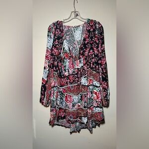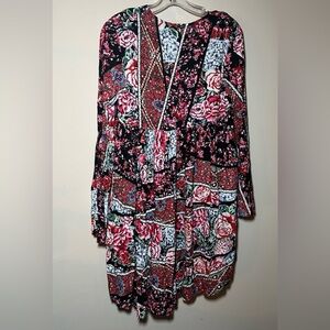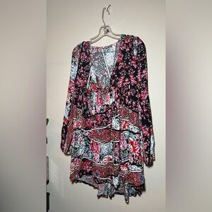 Elegant floral long sleeve dress with a mix of vibrant colors. There is a small hole on back of brand tag but it looks like it can be sewn up easily so please look at photos thoroughly.