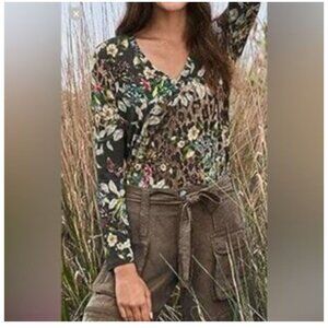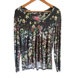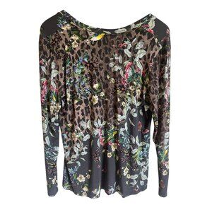Johnny Was Ash Bird Leopard V-Neck Top Bamboo Blend Size Small Long Sleeve