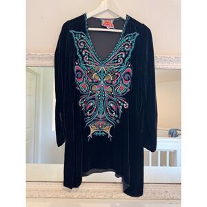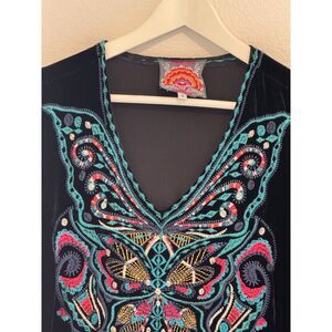 Johnny Was Aurelia Black Butterfly Embroidered Velvet V-Neck Tunic Top Size S