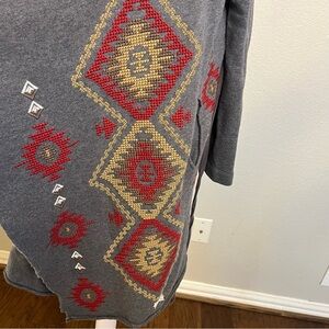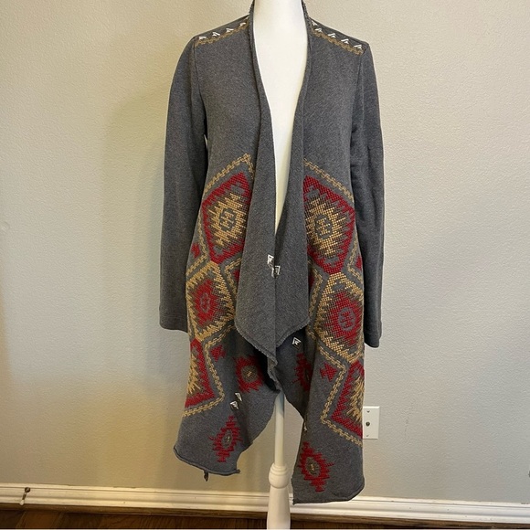 Johnny Was Aztec Gray Patterned Cardigan Sweater Women's Size Small