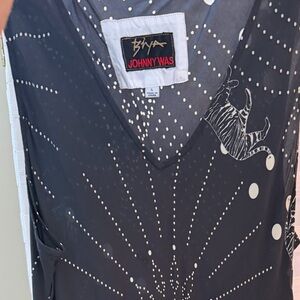 Johnny Was BIYA Black Silk Rea Dress with tiger graphics - sleeveless flowyyy lg