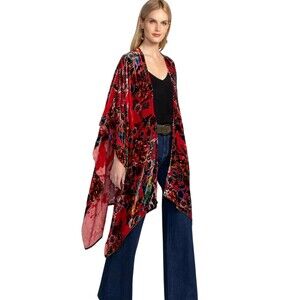 Johnny Was BOBCAT Red Burnout Velvet Valour Shawl R98424-O NEW One Size