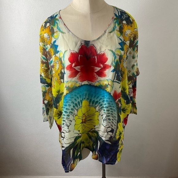 Johnny Was Barra Floral Print Flutter Blouse Sz S