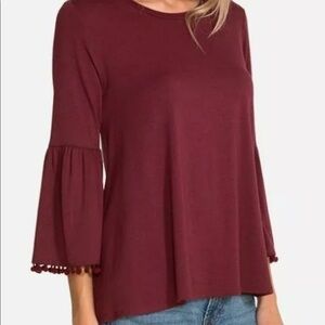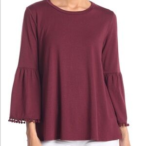 Johnny Was | Bell Sleeve Pom Pom Trim Top Wine XS