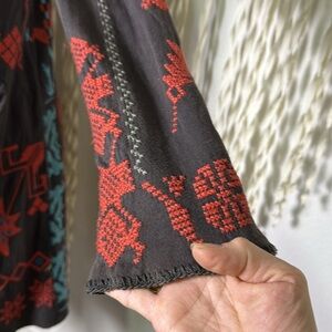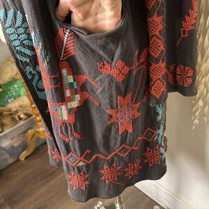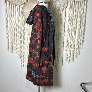 Johnny Was | Biya Brown Hood with Aqua and Coral Aztex Embroidery Detail Size S