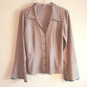 Johnny Was Biya Collection 100% Silk Flare Cuff Hook Close Light Shirt Jacket L