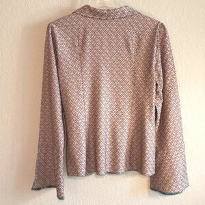 Johnny Was Biya Collection 100% Silk Flare Cuff Hook Close Light Shirt Jacket L