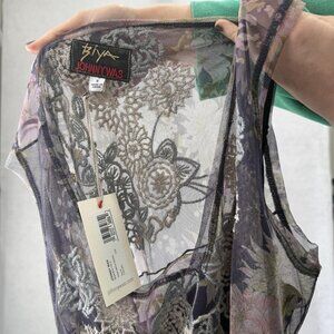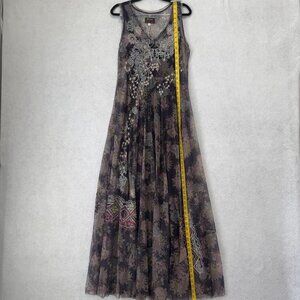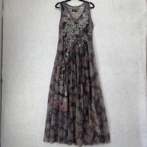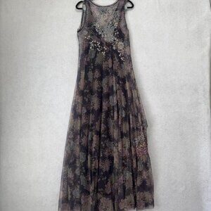 Johnny Was Biya Dress Womens Small Black Floral Embroidered Mesh Maxi B31120-5