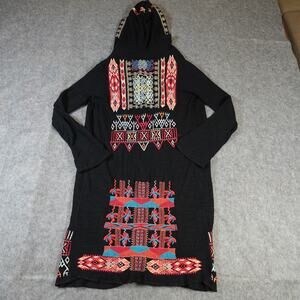 Johnny Was Biya Duster Womens Small Hooded Kimono Embroidered Boho Art Western