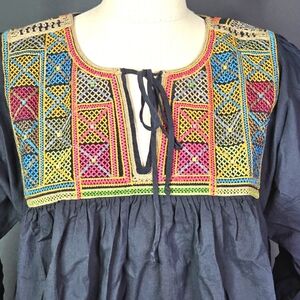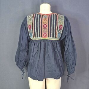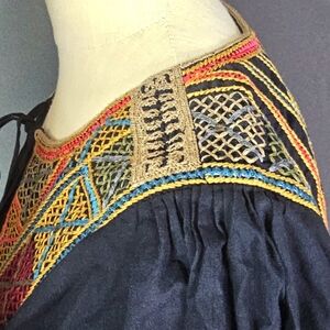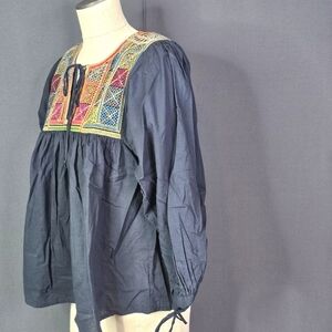Stylish black top with vibrant embroidery. Perfect for casual outings.
