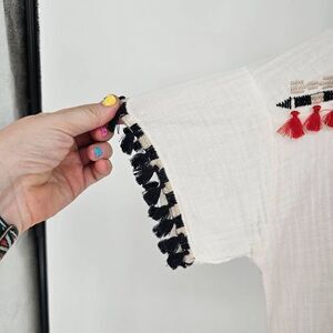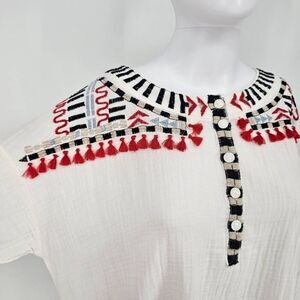 Johnny Was Biya Ramar Peasant Boho Tassel Oversized Top White S