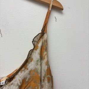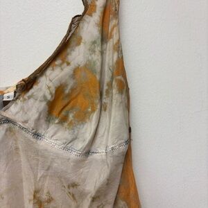 Beautiful Johnny Was Biya 100% Silk Watercolor Print Cami Blouse. Crinkle fabric. Lace trim.