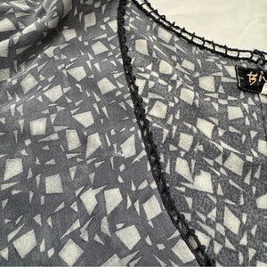 Johnny Was Biya Small 100% Silk Blouse Tunic Top ~ Relaxed Fit Gray Boho Modern