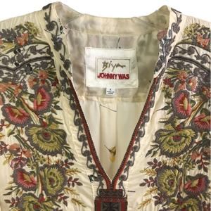 Johnny Was Biya Tunic Top Womens S Cream Embroidered Floral Long Sleeve V-Neck
