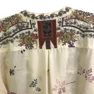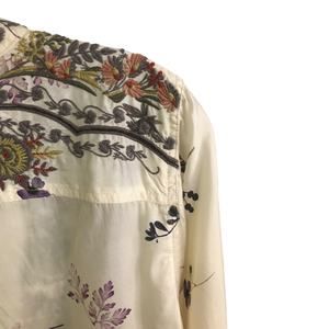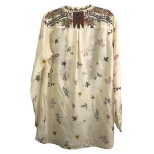 Johnny Was Biya Tunic Top Womens S Cream Embroidered Floral Long Sleeves V-Neck